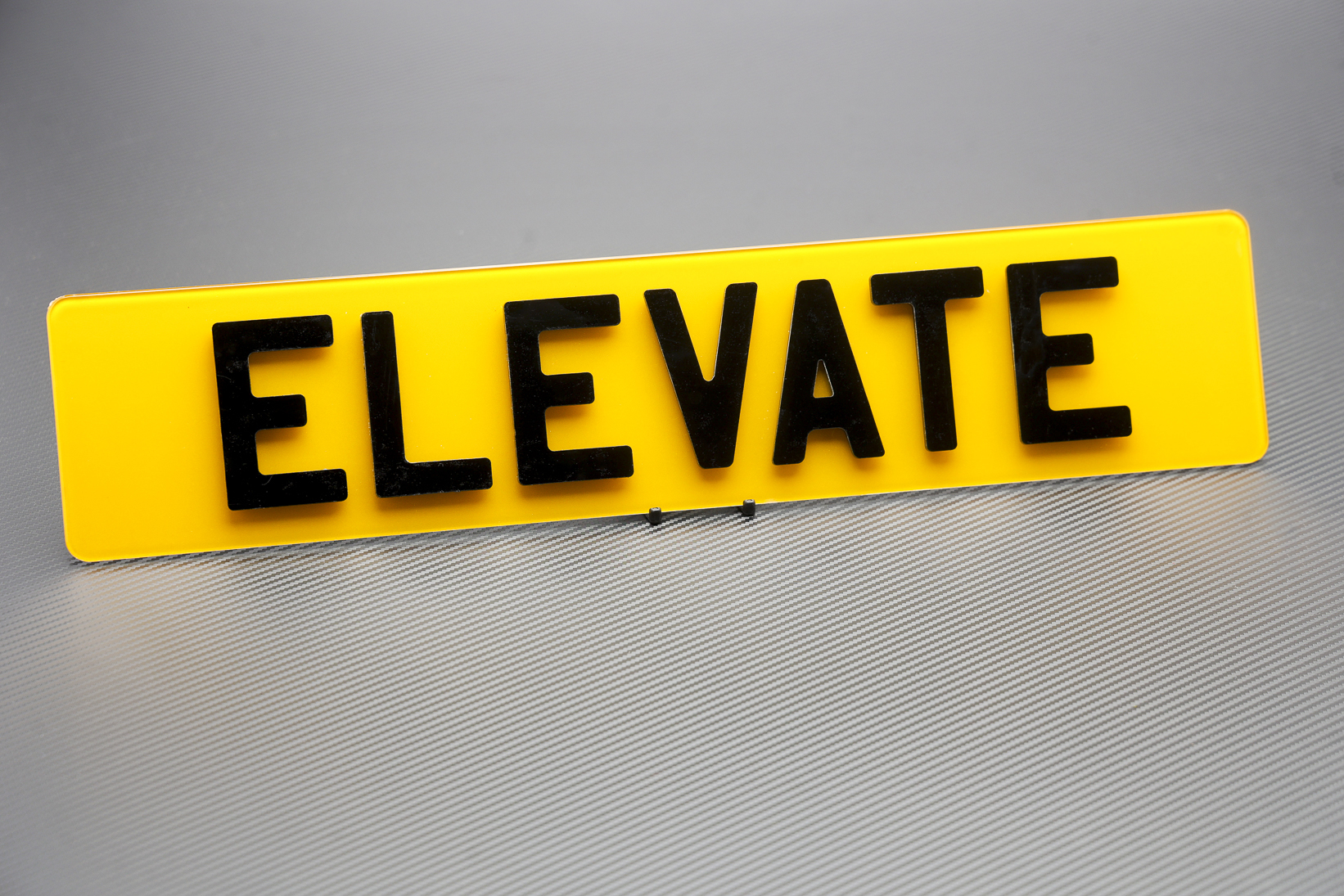 Laser-cut acrylic 3mm deep characters with a gel resin finish, for a premium textured plate.