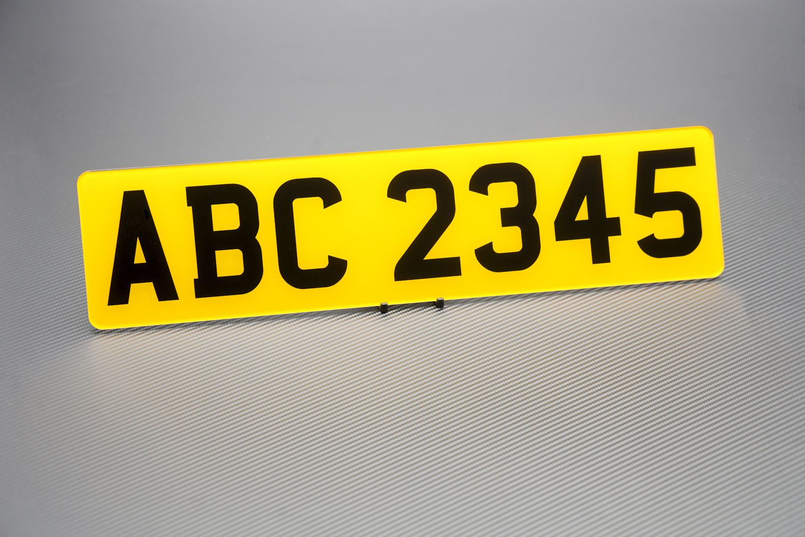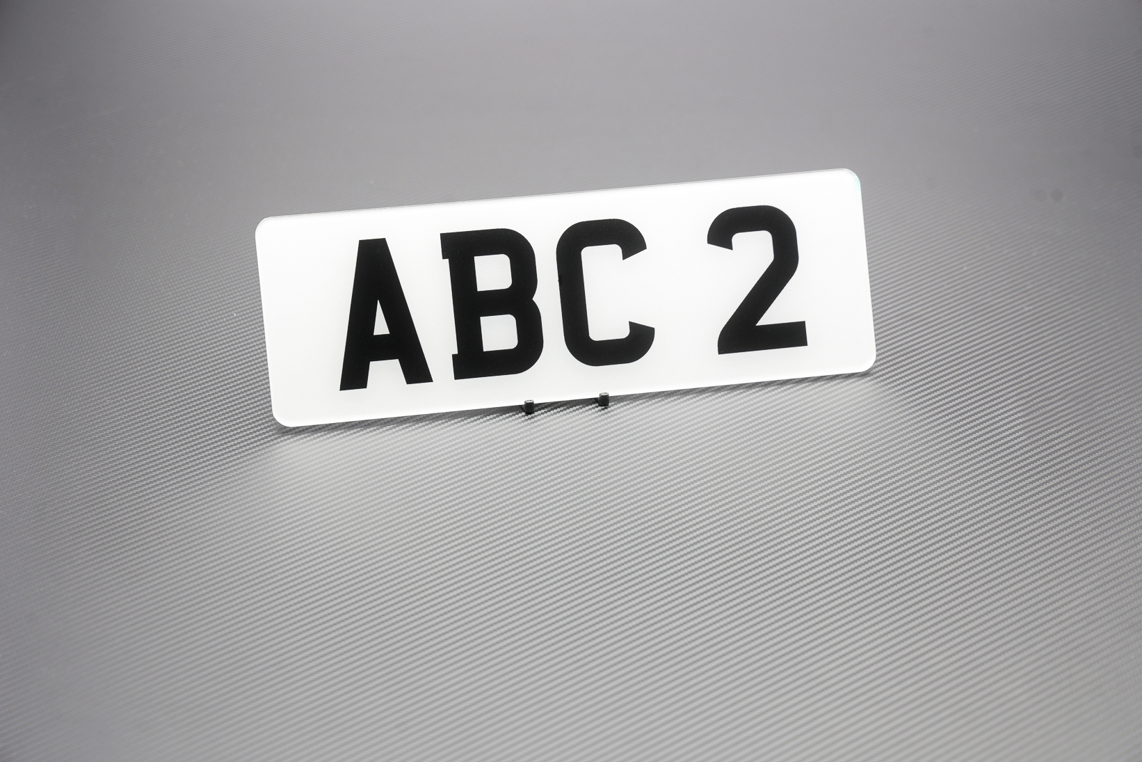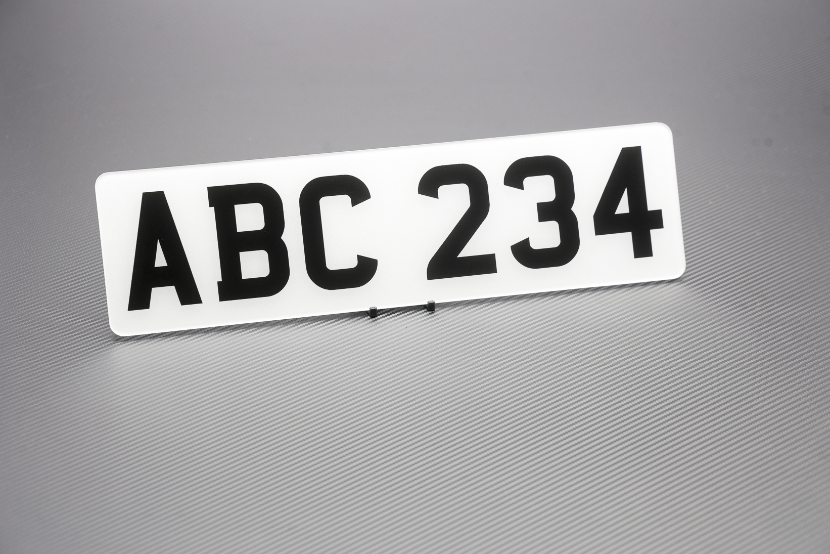 The most common type of number plate. Traditional printed plates with flat lettering and a reflective background on high quality acrylic.